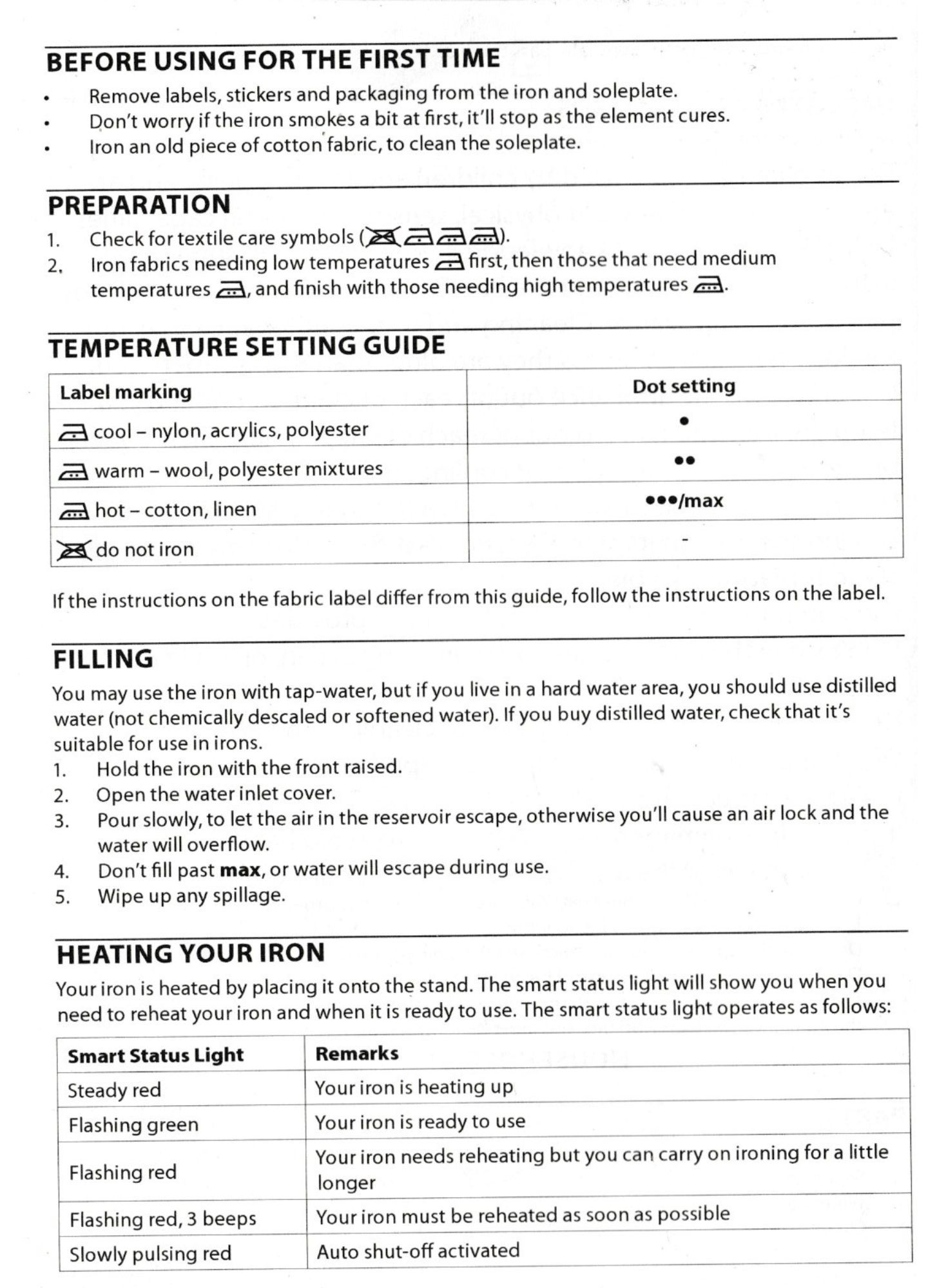 Fill the iron with water - open water inlet cover and slowly fill to max line.
