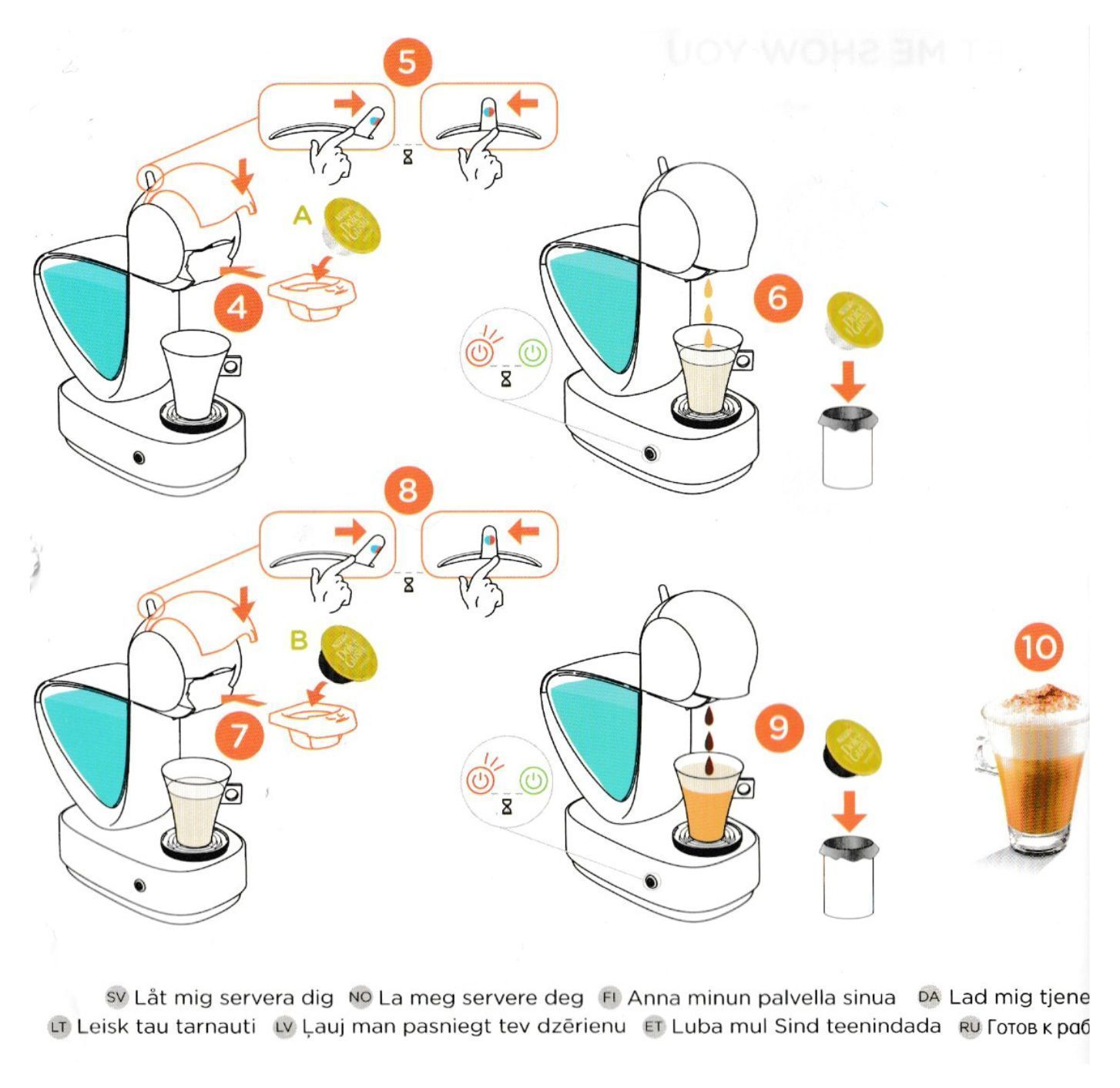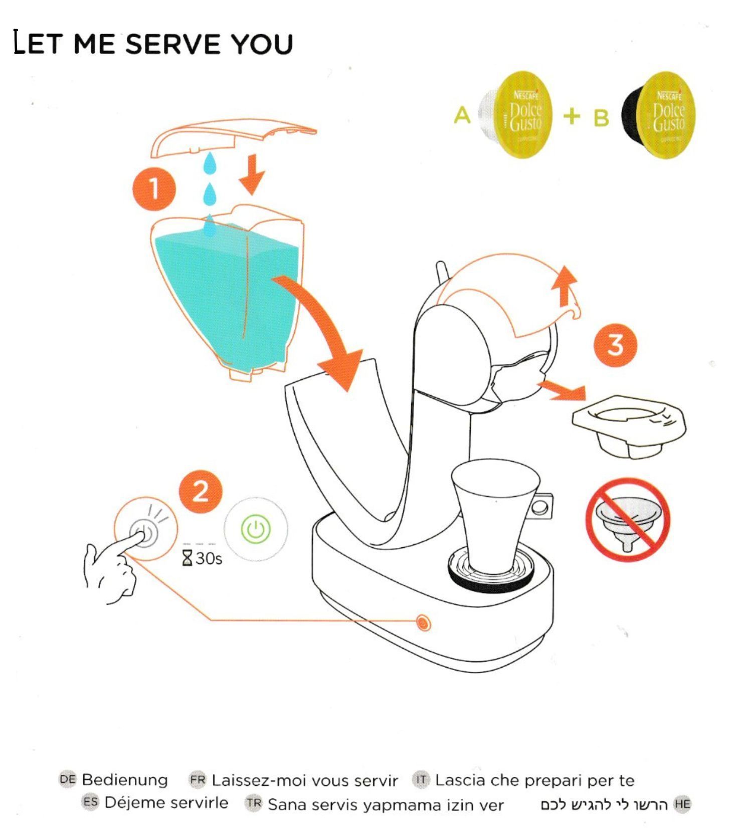 Pull front lever (with the Dolch Gusto logo on) up and pull out the compartment. Pop in a coffee pod, slide back in the compartment and push the lever back down.